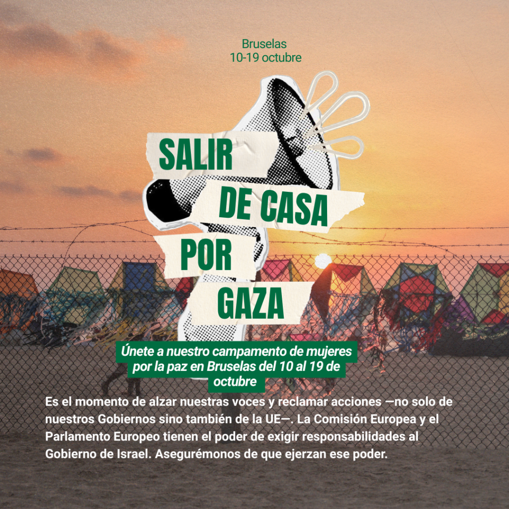 La iniciativa parte de una idea sencilla pero poderosa: si los hombres históricamente han salido de casa para hacer la guerra, las mujeres pueden y deben salir para hacer la paz. En ese espíritu, la campaña reclama un cese inmediato de los crímenes cometidos contra la población palestina, el fin de la ocupación y la responsabilidad efectiva de las instituciones europeas ante la violación del derecho internacional humanitario.